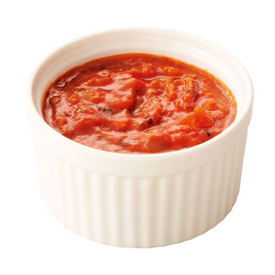 完熟トマトをベースに玉ねぎを入れた、手作り感のある具材たっぷりでジューシーなピザソースです。にんにくの香りと完熟トマト・オレガノの爽やかな味わい。