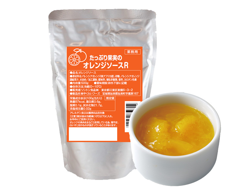 清涼感が特徴のバレンシアオレンジ果肉と果汁を合わせて約63%配合した、スイーツからお惣菜まで、爽やかさと彩りを添える食感豊かなソースです。