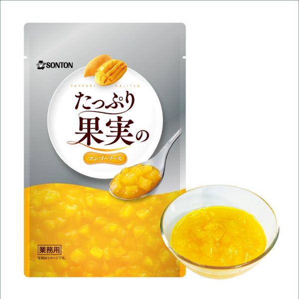 ダイスマンゴーを約80%配合し、果肉感とフレッシュ感にこだわったマンゴーソースです。