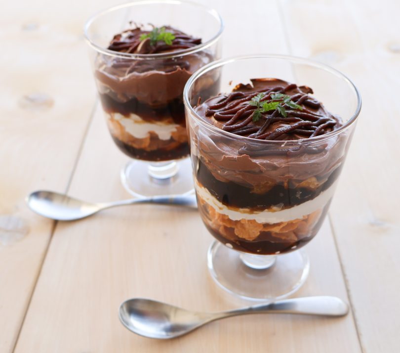 チョコとコーヒーゼリーのミニパフェ( パンにぬるホイップクリーム チョコ/ファミリーカップ 香るチョコレートクリーム )